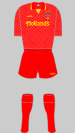 Back Row: Joe Battersby (Director), Les Knowles (Director), Connie Booth (Director), Andy Bondswell, Clive Evans, Steve Whitehead, Mark Pye, Andy Newell, Ray Sidderley, Bernie Hughes, Charlie Bradshaw, Mark Hilton, Stuart Whitehead (Owen), Milton Brown, Darren Lyons, Mel Clay (Director), Alan Harker (Director), Jim Shaw (Groundsman). Front Row: Alan Crane (Physio), Joe Daly (Secretary), Chris Grimshaw, Paul Beck, Jay McComb, John Alty (Chairman), Jack Hudson (Director), Phil Staley (Manager), David Feeney, Dave Galloway, Paul Wilson, Jimmy Collins, Mark Walsh, Phil Leather (Kitman), Graham Leishman.