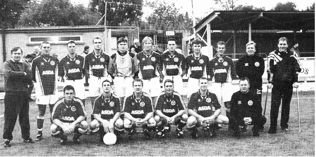 Back Row: Leighton James (Manager), Greg Challender, Jez Baldwin, Russell Procter, Rob Mulloy, Darren Quick, Darren Davies, Stuart Cliff, David Leaver, Les Thompson, Jim McCluskie. Front Row: Brian Welch, Steve Haw, Chris Molloy, Carl Greenwood, Wayne Dowell, Phillip Leather (Kitman).